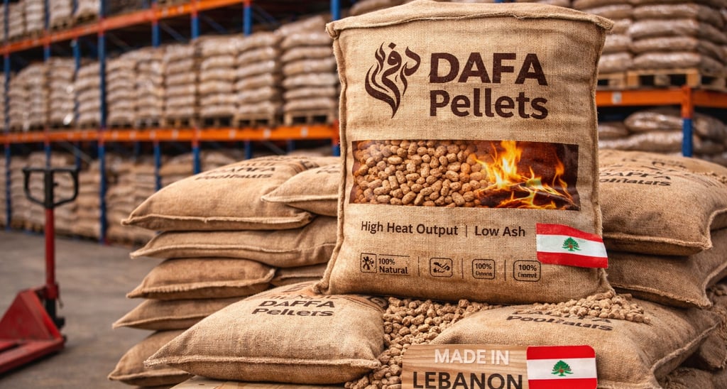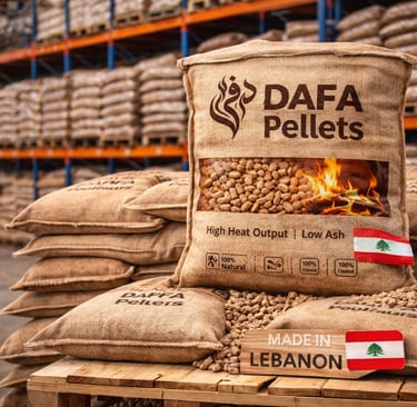 Dafa Biomass Pellets are made in Lebanon from 100% natural wood, free from chemicals or additives, ensuring pure and sustainable energy.